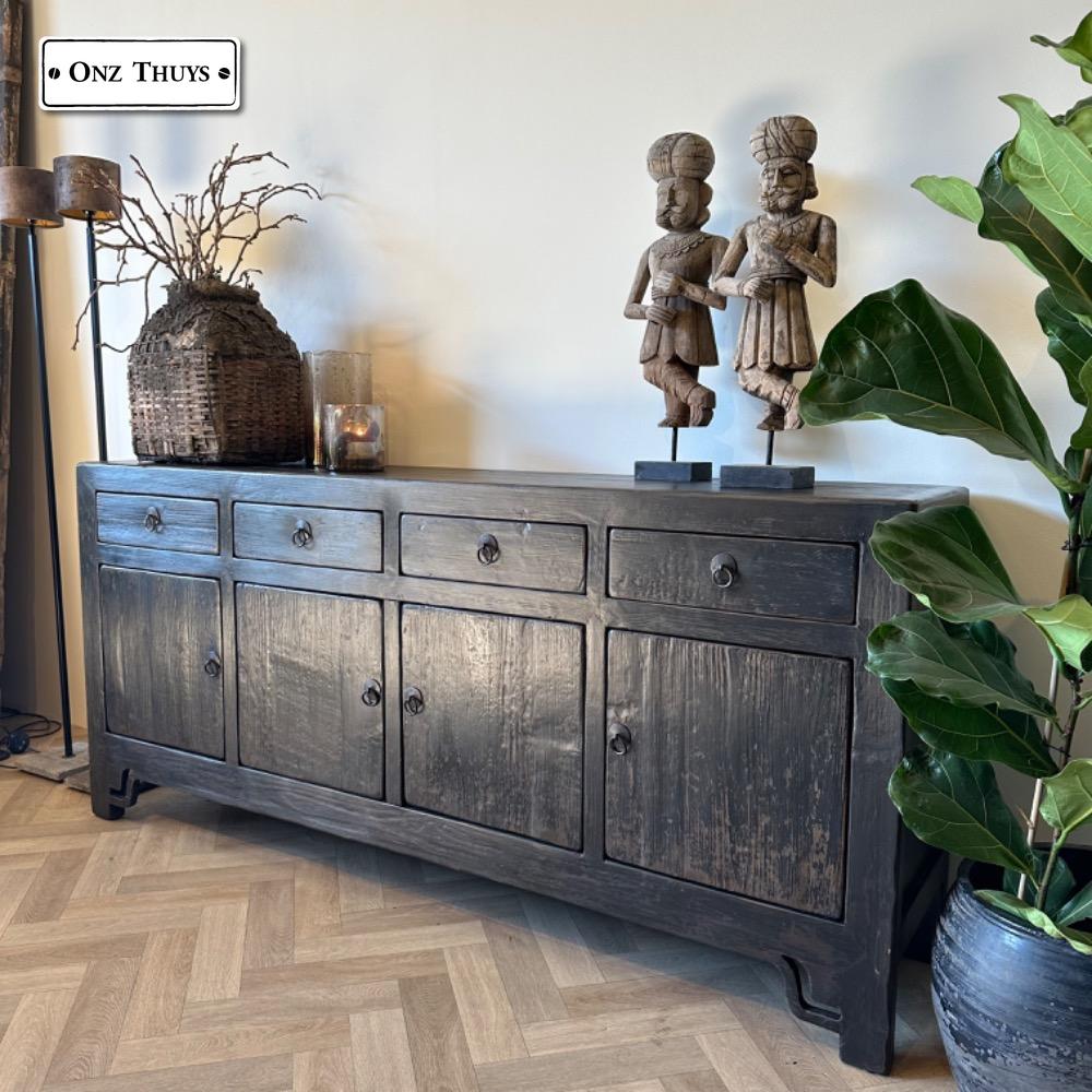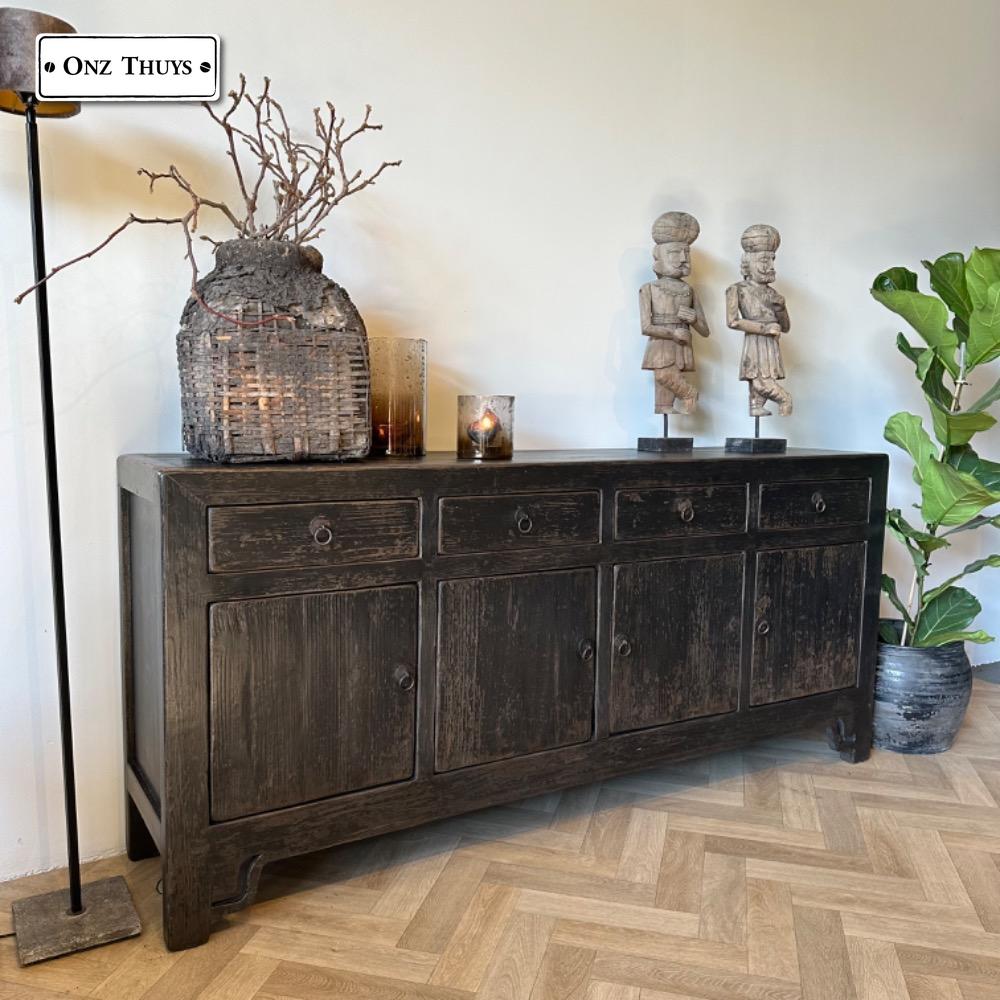 Gaaf stoere Chinees dressoir old black