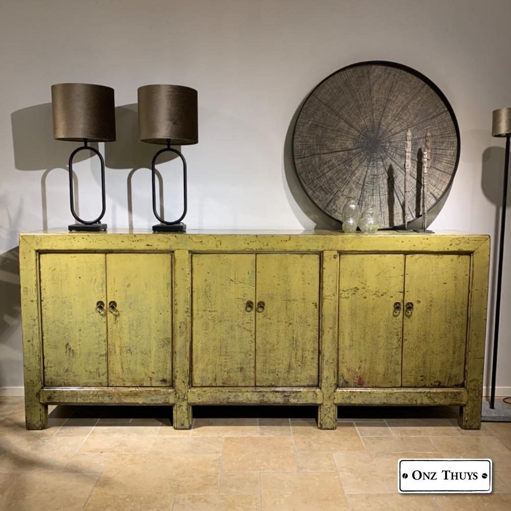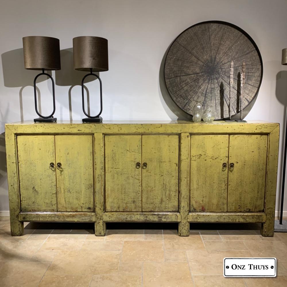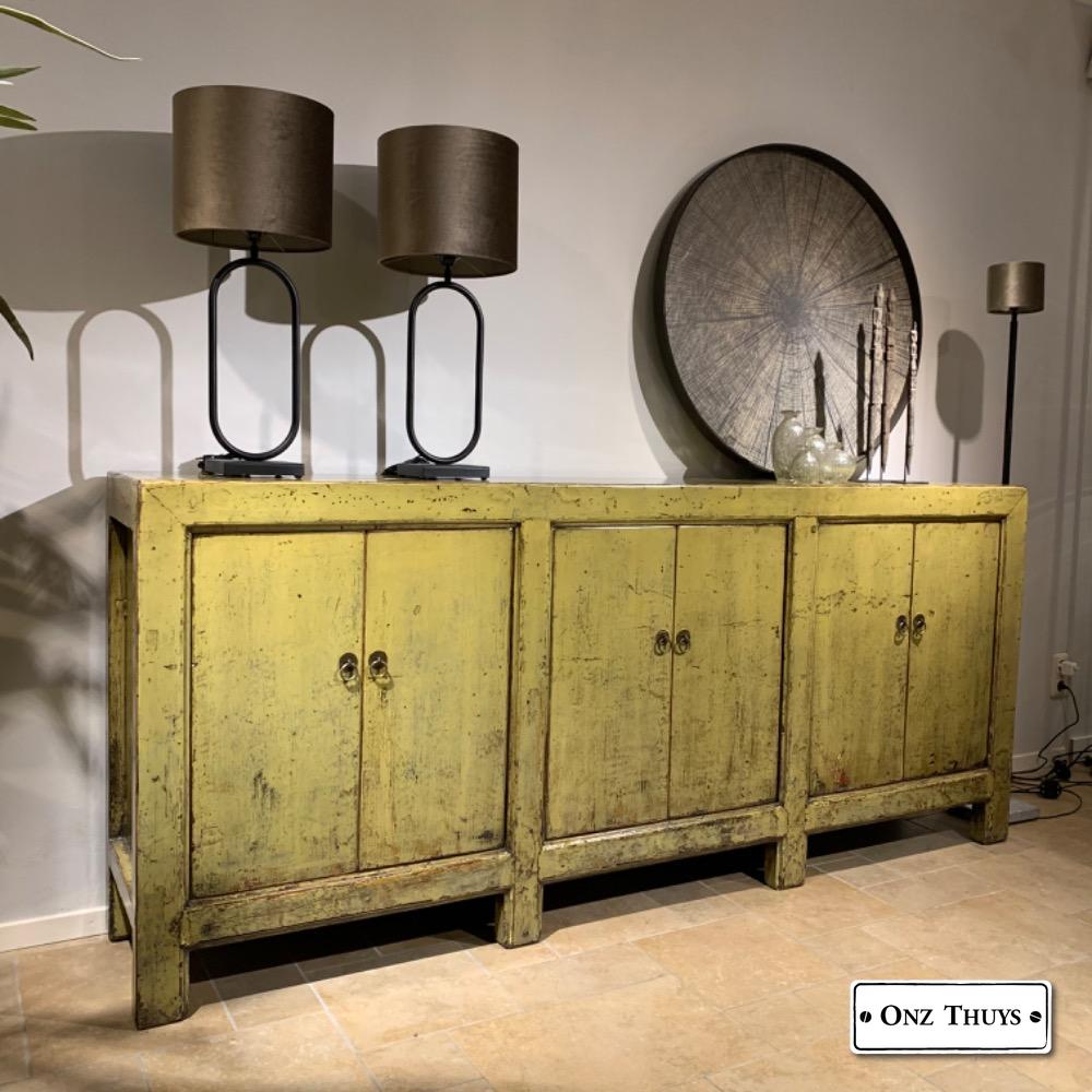 Dressoir hoogglans old antique old okergeel met 6 deuren