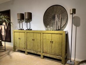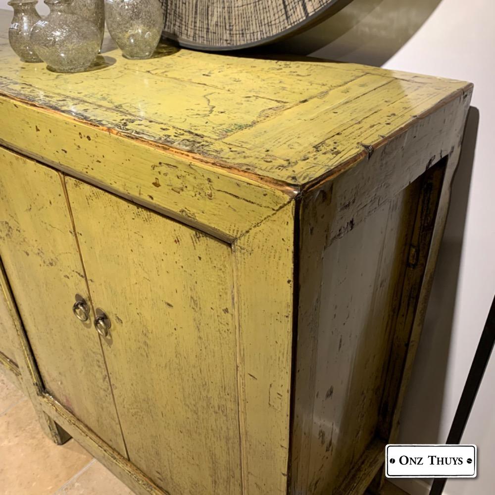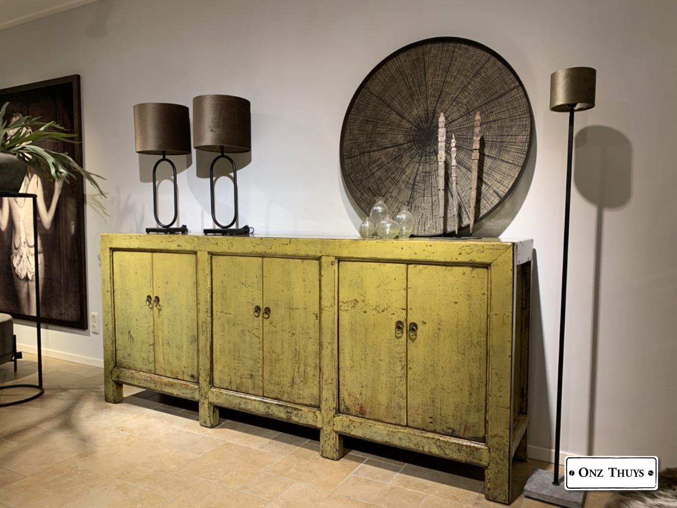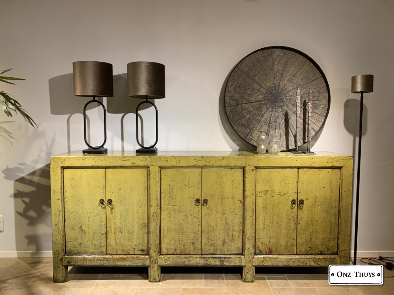 Dressoir hoogglans old antique old okergeel met 6 deuren