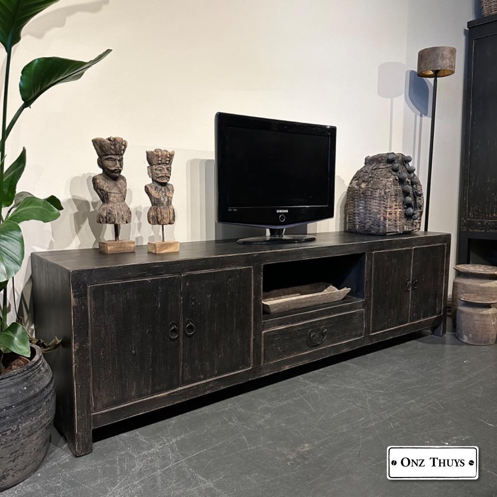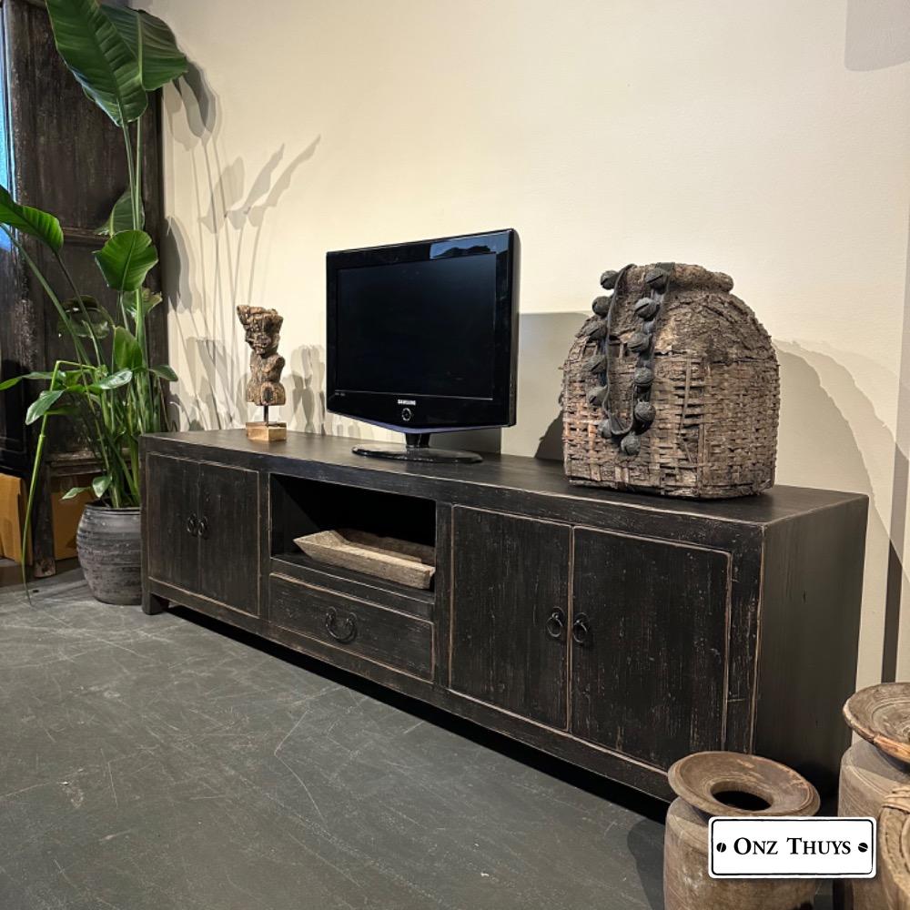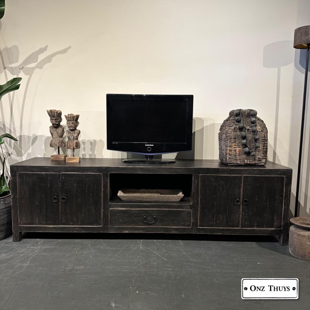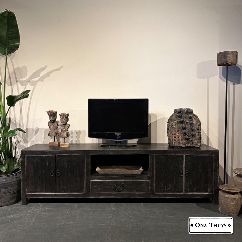 robuuste -tv kast van oud doorleefd Chinees Elmwood MW.