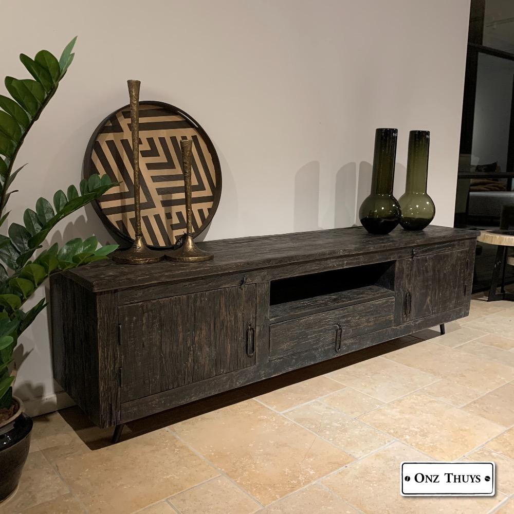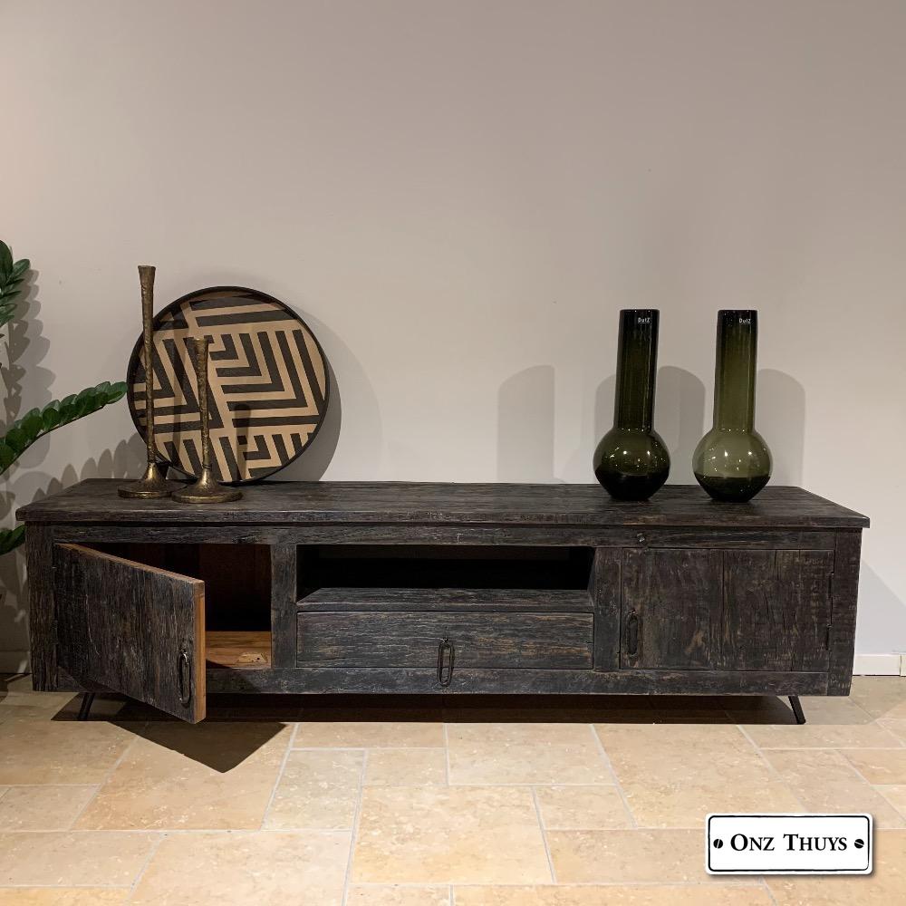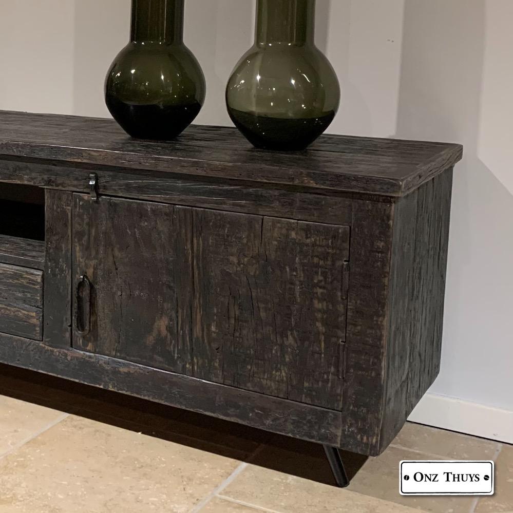 Tv meubel heeft 2 deurtjes en 1 lade.