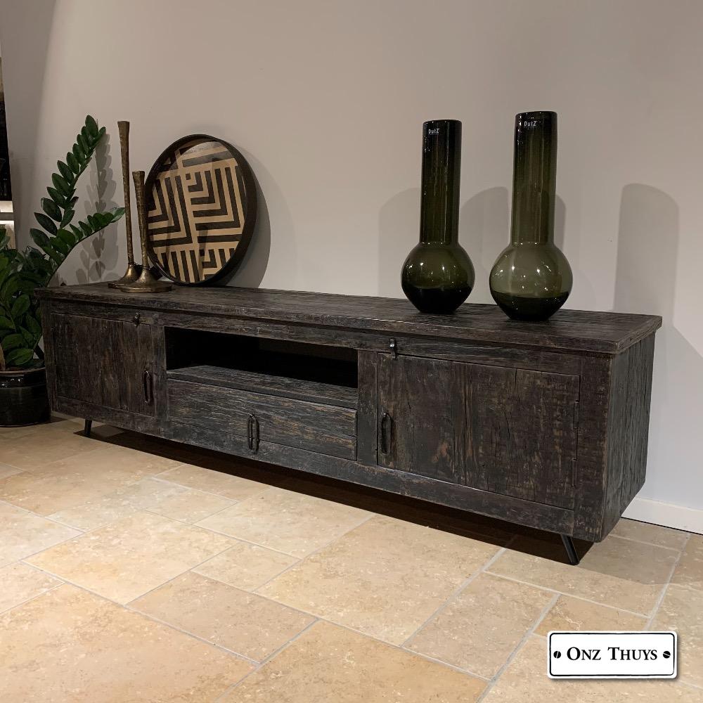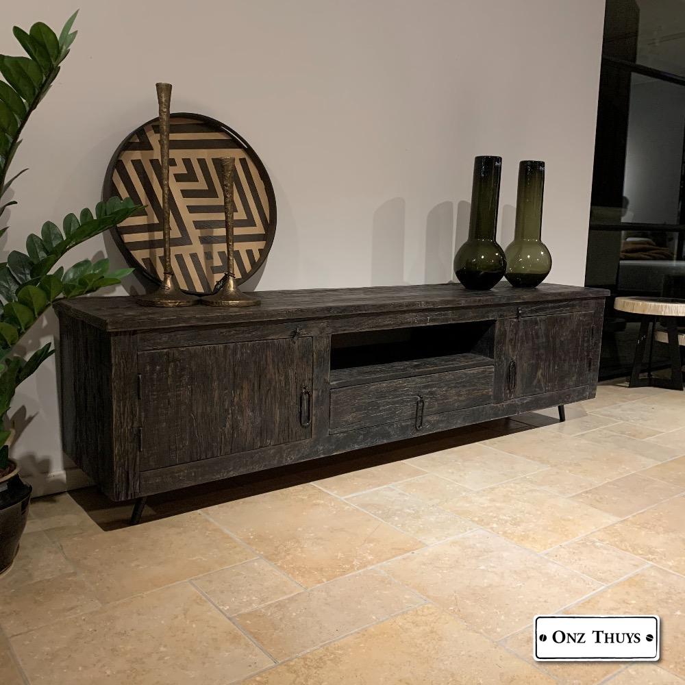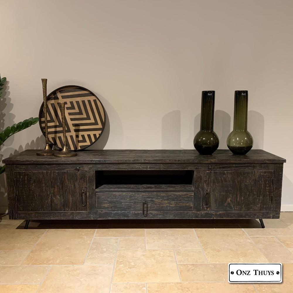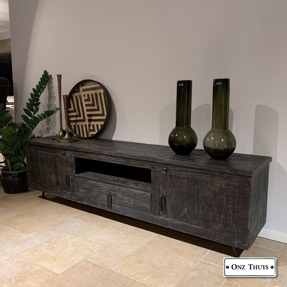 Tv meubel heeft 2 deurtjes en 1 lade.
