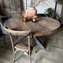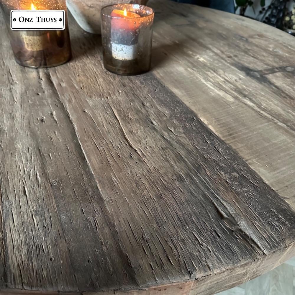 De tafels hebben we op voorraad, elk tafelblad heeft een unieke uitstraling.