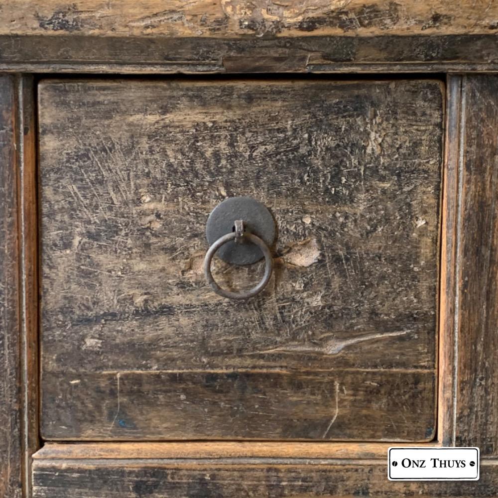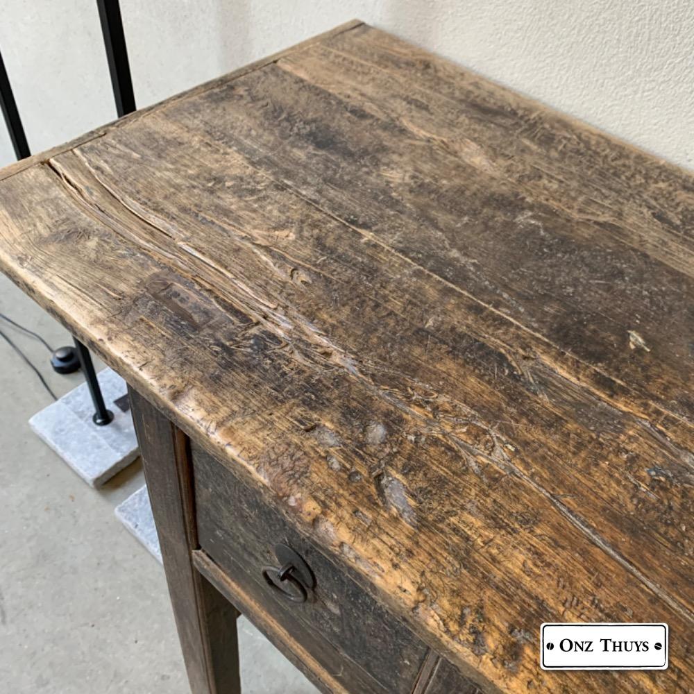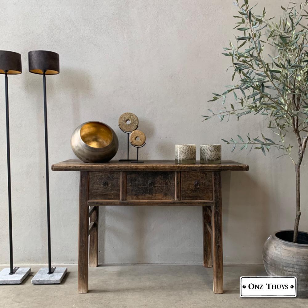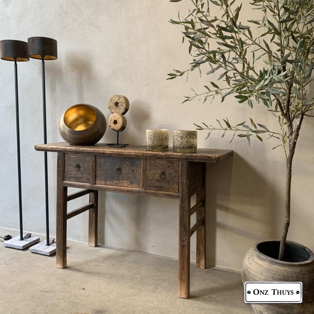 Oude unieke originele Chinese wandtafel met 3 lade. met een authentiek notenhouten blad.