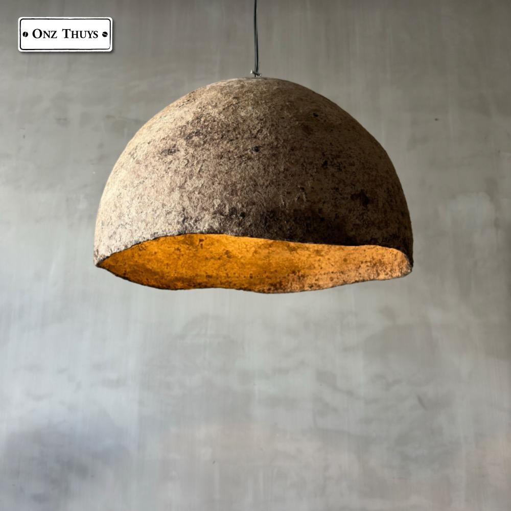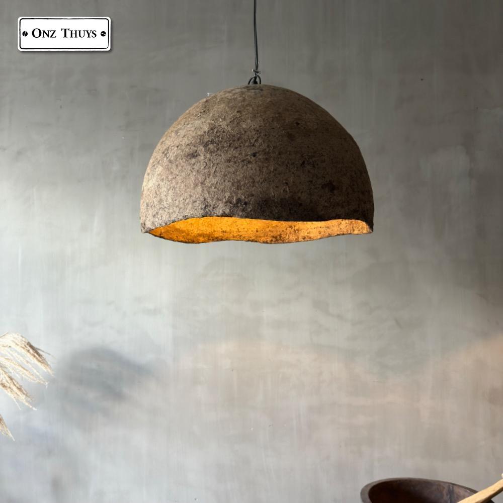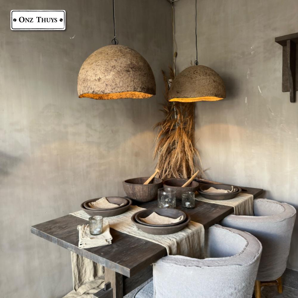 Breng warmte en sfeer in je interieur met de Nouri hanglamp van Aura Peeperkorn. Deze unieke lamp is met de hand gemaakt van klei en leem, waardoor elke lamp een authentieke en natuurlijke uitstraling heeft. De prachtige aardetint past perfect in diverse interieurstijlen, van landelijk tot modern.