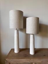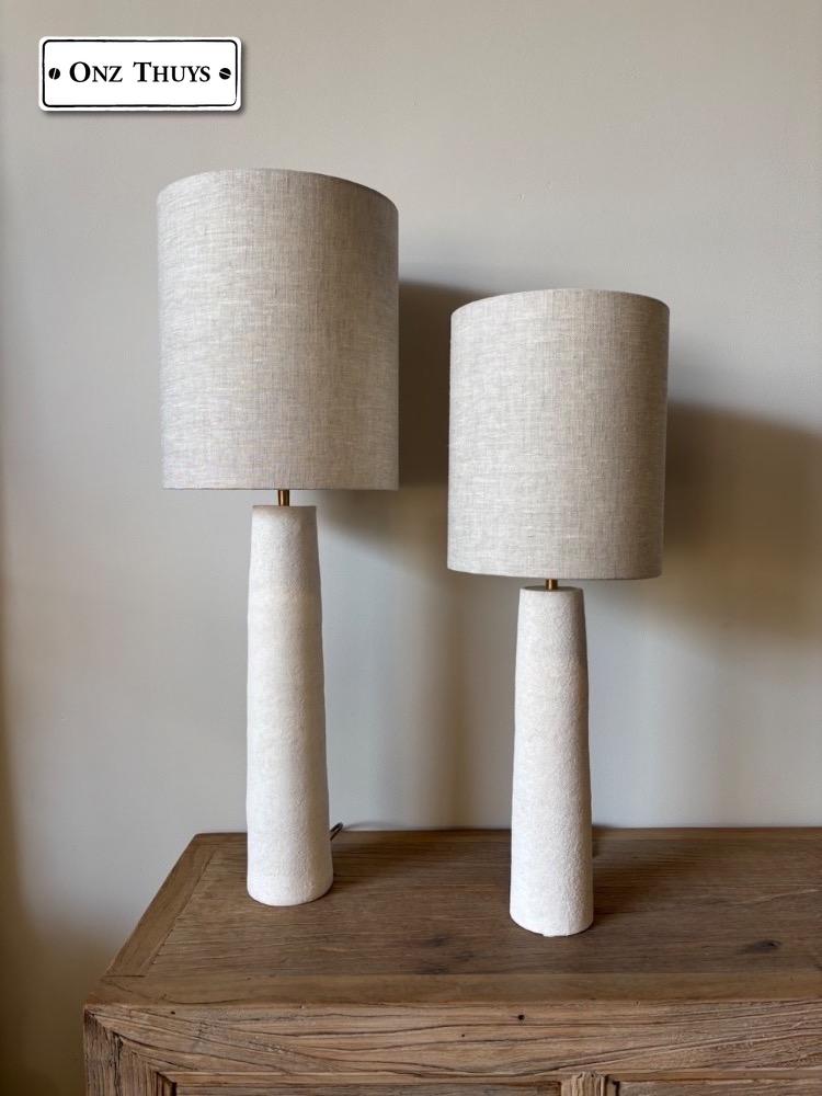De tafellamp is van keramiek gemaakt